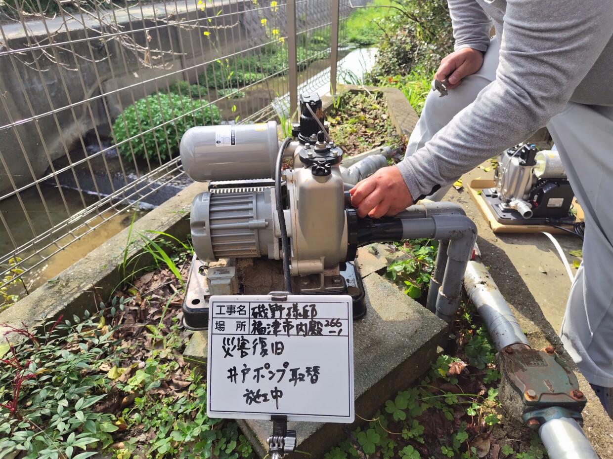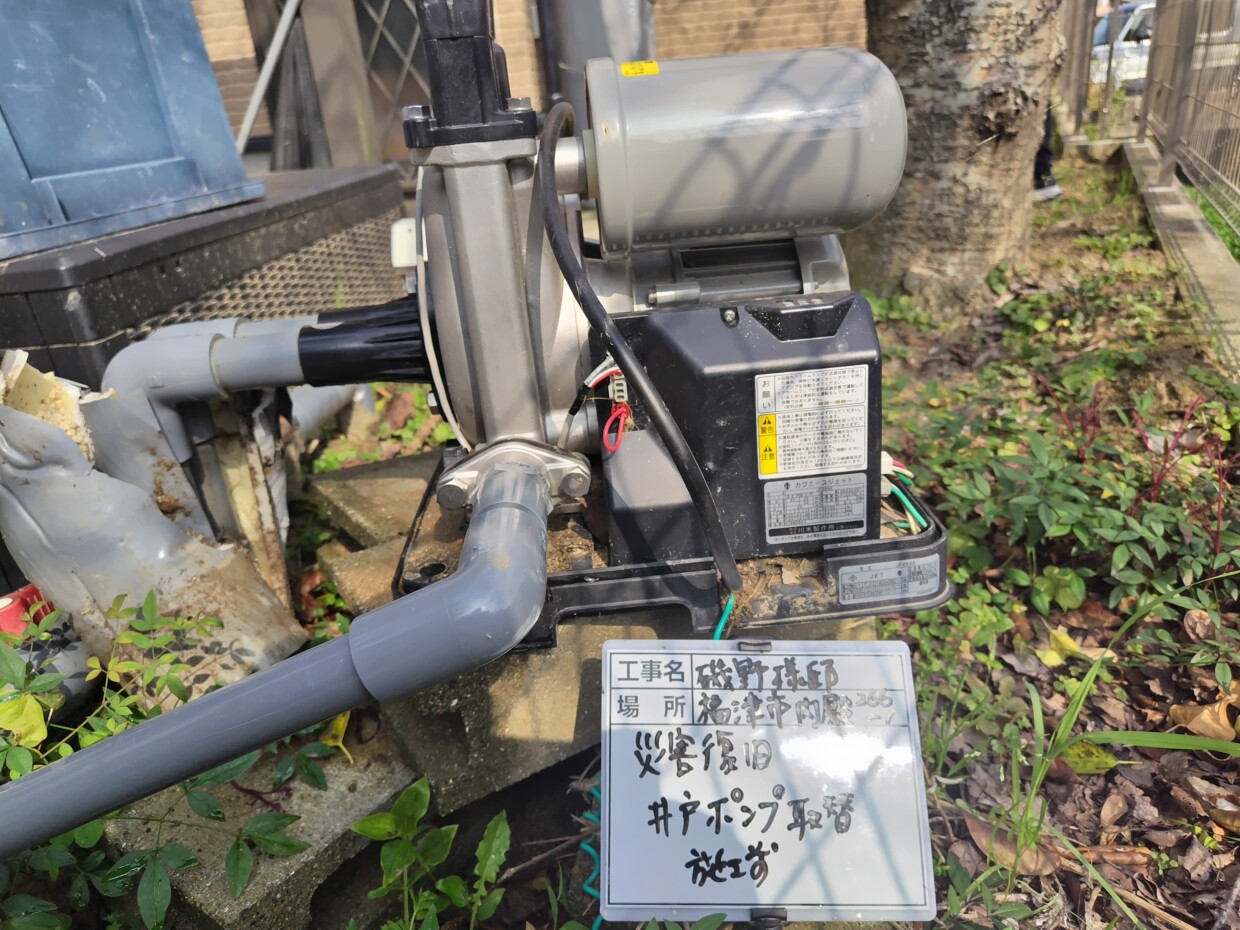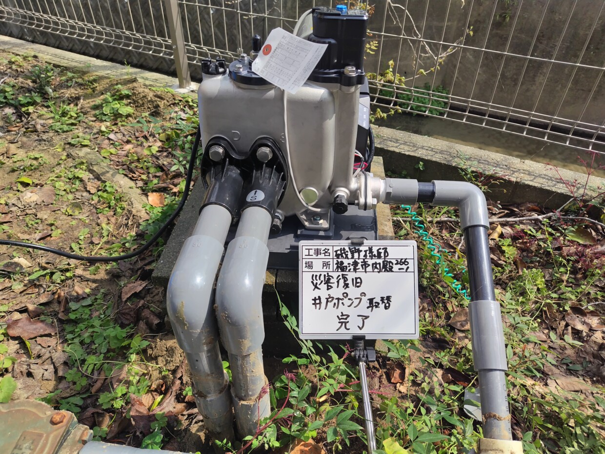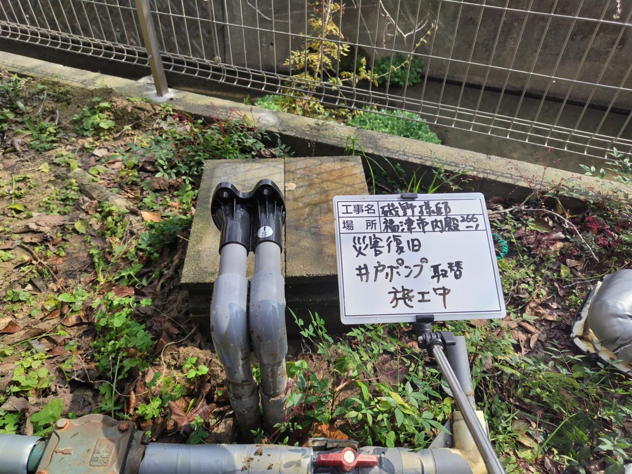 | 事 例 | I様邸 | 地 域 | 古賀市 | 備 考 | 井戸ポンプ取替 |