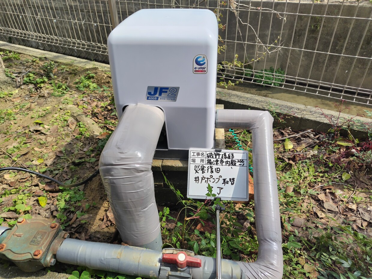 | 事 例 | I様邸 | 地 域 | 古賀市 | 備 考 | 井戸ポンプ取替 |